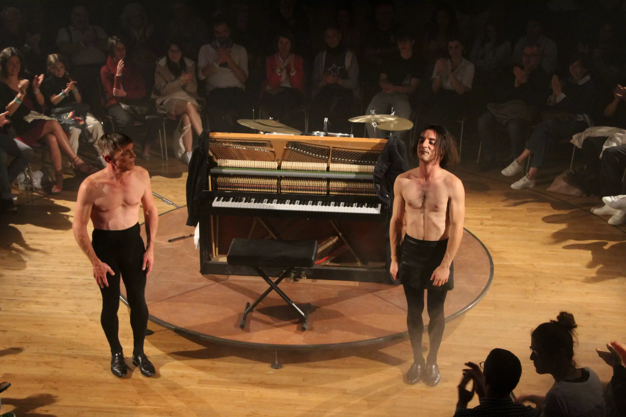 Deux musiciens fantaisistes se présentent devant nous. Ils sont coiffés, costumés, échauffés comme avant un Grand Concert. Tout semble sous contrôle… Mais ce soir, ils ont une envie différente : jouer une musique inspirée par l’humeur du moment. Alors le monde sonore se dérègle peu à peu… Un grain de sable s’infiltre dans la mécanique bien huilée, une interaction inattendue s’immisce, dérange, complique, grince.