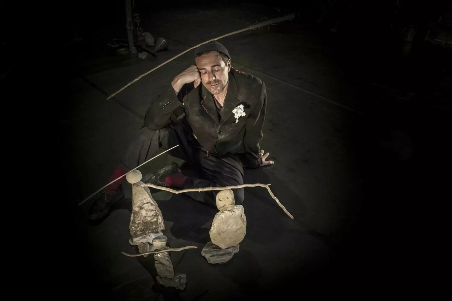Fabien Coulon, incroyable circassien d’objets et mime, nous invite, à travers son regard, à nous émerveiller face aux petits riens à côté desquels nous passons sans doute mais qui font de grands petits touts ! Il crée un espace intime et chaleureux, hébergeant un imaginaire poétique et fragile et nous parle humblement… de la vie. Sur son île peuplée de curiosités, son refuge, sa cabane, ce naufragé solitaire réalise de minuscules et délicates prouesses avec ce qui lui tombe sous la main : des branches, du sable, des fils, de l’air, de l’écume… Il s’invente et crée des compagnons de vie et nous plonge au cœur de son petit cirque intérieur, tout en équilibre, peuplé de mirages de l’enfance, de joyeuses curiosités et de rencontres singulières. Un véritable cirque forain, d’une infinie poésie et d’une immense délicatesse, fait de petits riens pour épater les petitous !