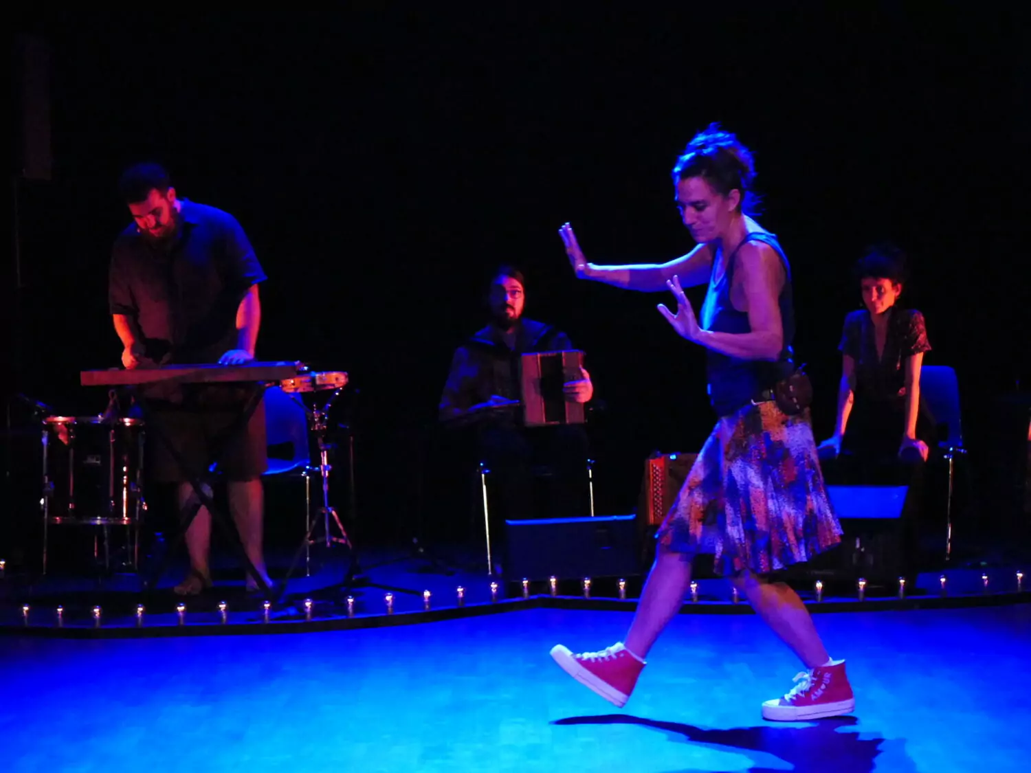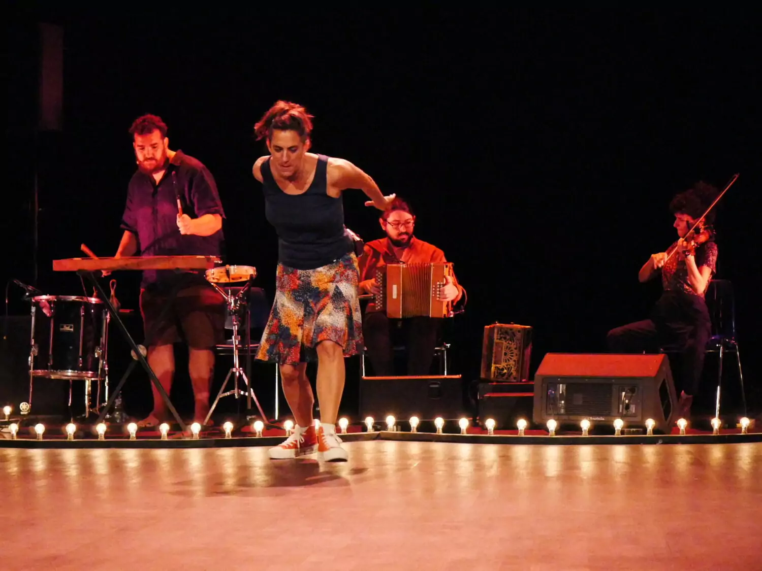 À 19h, le spectacle « Comment ça se danse ? » Accompagnée de musiciens en live (accordéons diatoniques, violon, flûtes, percussions et voix) Chloé Martin nous raconte, en corps et en mots, sa rencontre avec les bals traditionnels. La parole théâtrale est là pour exprimer la joie et l’engouement autour des bals trad et folk.